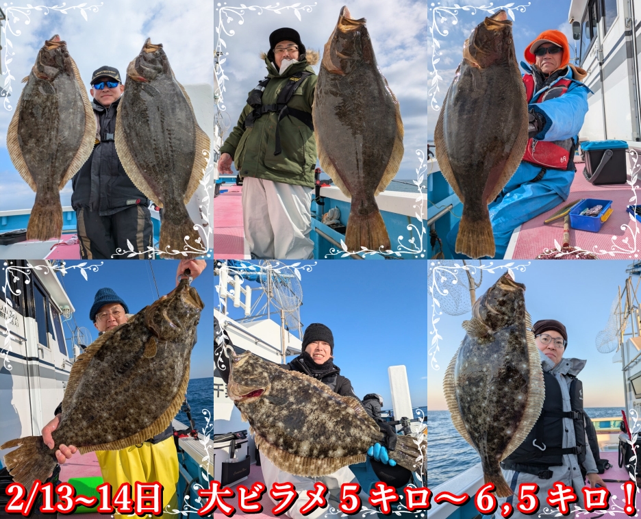 2月~も午前ヒラメで出船します。昨年末よりイワシの回遊と共に大型のヒラメも釣れ始め、これから冬にかけて最盛期をむかえ、魚も肉厚となって脂ものりはじめて来ます!現在は5m~10mの浅場を狙っていますので、大型のヒラメのアタリや引きは強烈で、初心者の方にても楽しめると思います。ライトタックルのレンタルもありますので、是非、挑戦してください!